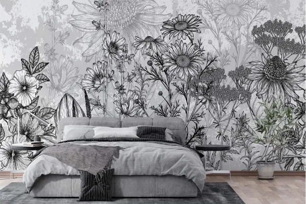 • -40% Aanbieding! Aanbieding! Fotobehang Fotobehang Zwart-wit afbeelding van bloemen (Artikelnummer: w02523)