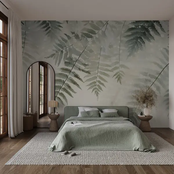 Fotobehang Zachte, gebogen bladeren in zachte tinten