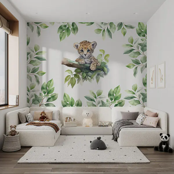 Fotobehang Abstracte bladeren in zachte aardetinten