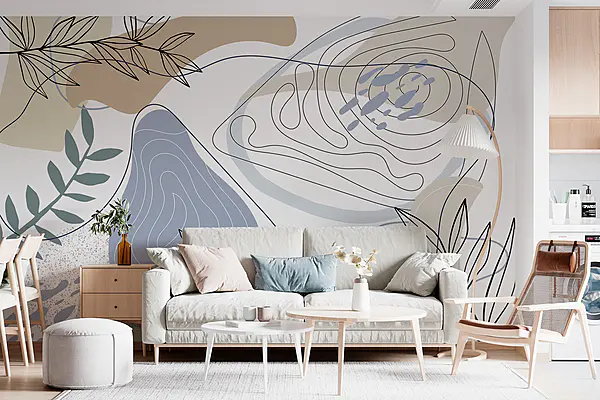 Fotobehang Abstracte witte lijnen op beige achtergrond