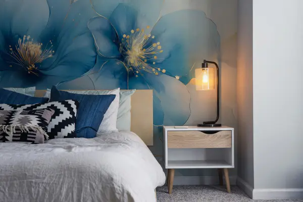 • -40% Aanbieding! Aanbieding! Fotobehang Fotobehang Delicate bloemen in zachtblauwe tinten (Artikelnummer: w02769)
