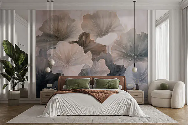 Fotobehang Groep bloemen met een wazige achtergrond