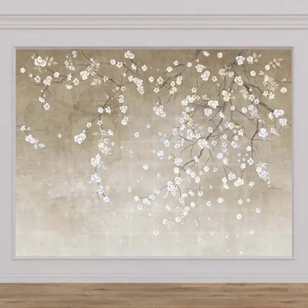 Fotobehang Elegante bladeren en bloemen die naar beneden vallen