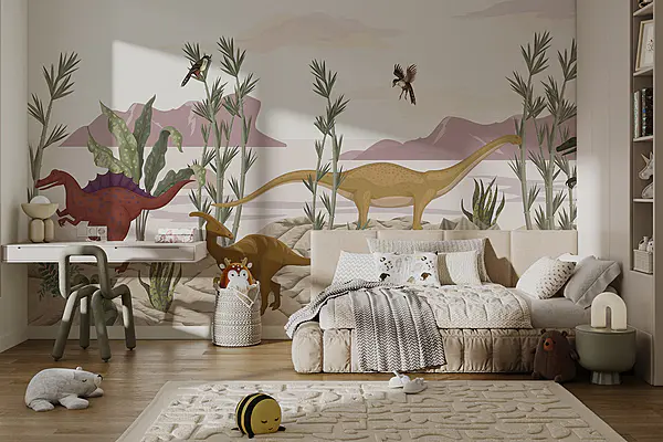 Fotobehang Groep meisjes met dieren in een bloemenveld