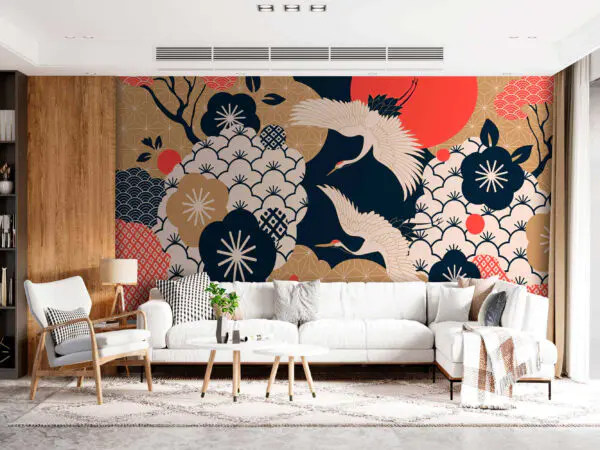 Fotobehang Lantaarns en bloesems creëren een dromerig tafereel