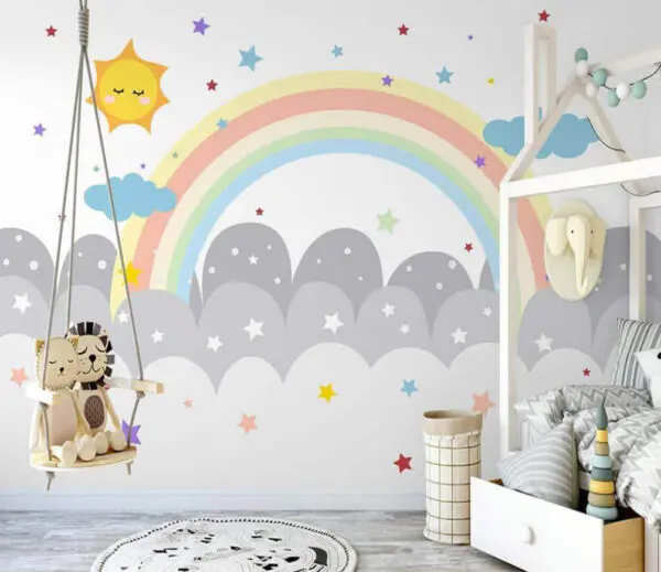 Fotobehang Regenboog geschilderd op een witte achtergrond