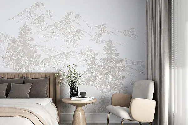 Fotobehang Schilderij van bladeren op een wit oppervlak