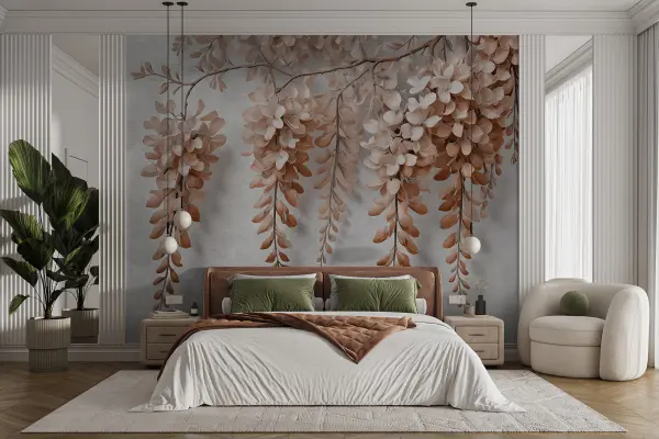 Fotobehang Tak met roze bloemen en witte bloemen