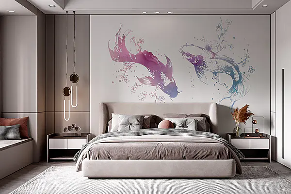 Fotobehang Vissen en planten op een witte achtergrond
