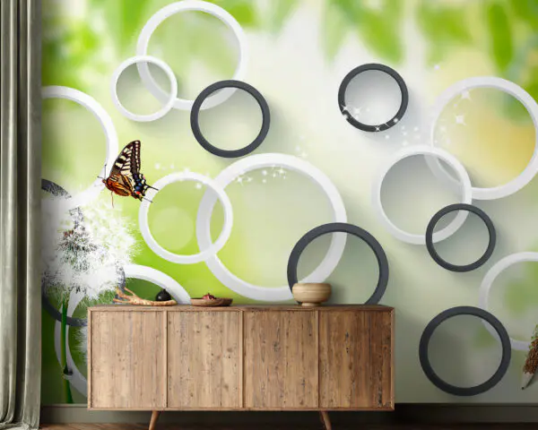 Fotobehang Vlinder tussen bleke bloemenfluisteringen
