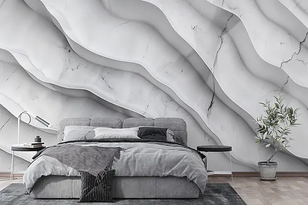 Fotobehang Wit wervelend oppervlak met witte bolletjes
