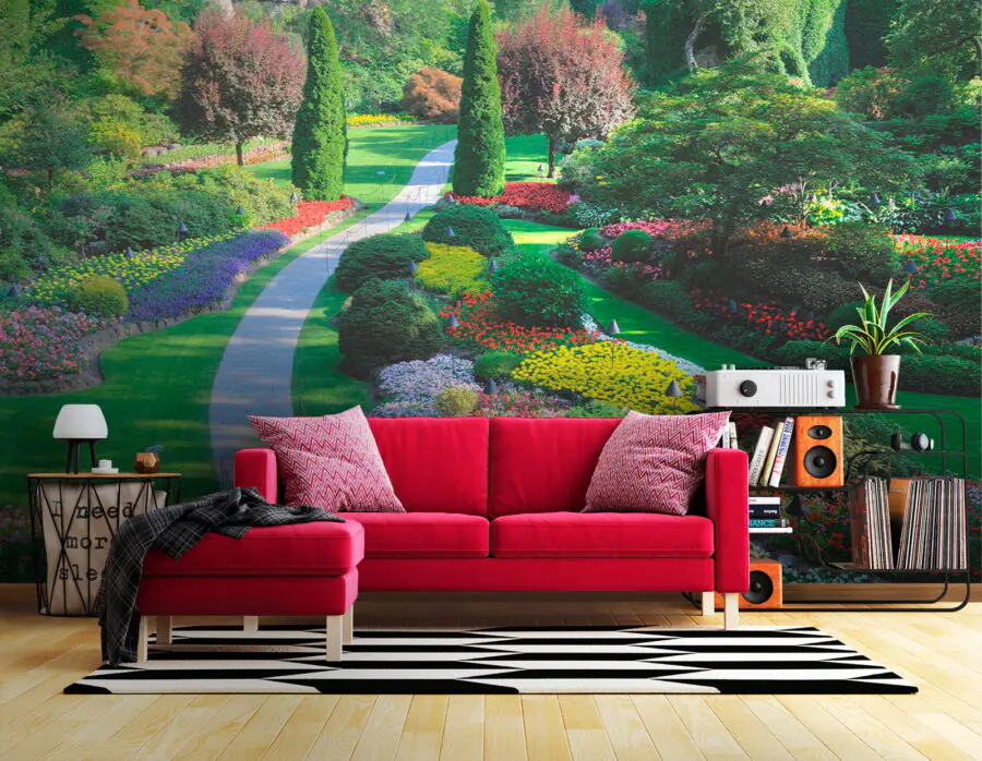 Transform your space into a vibrant escape with this stunning wall mural that captures a garden bursting with color. Imagine walking through a winding path flanked by blooming flowers and lush greenery—it’s like bringing the outdoors in! Perfect for brightening up a dull wall or creating a peaceful nook, this mural invites daydreams of sunny days and butterflies flitting about. Feel that calm wash over you as you sip your morning coffee while surrounded by nature’s beauty, minus the pesky bugs, of course. A touch of charm, a splash of joy—what’s not to love?