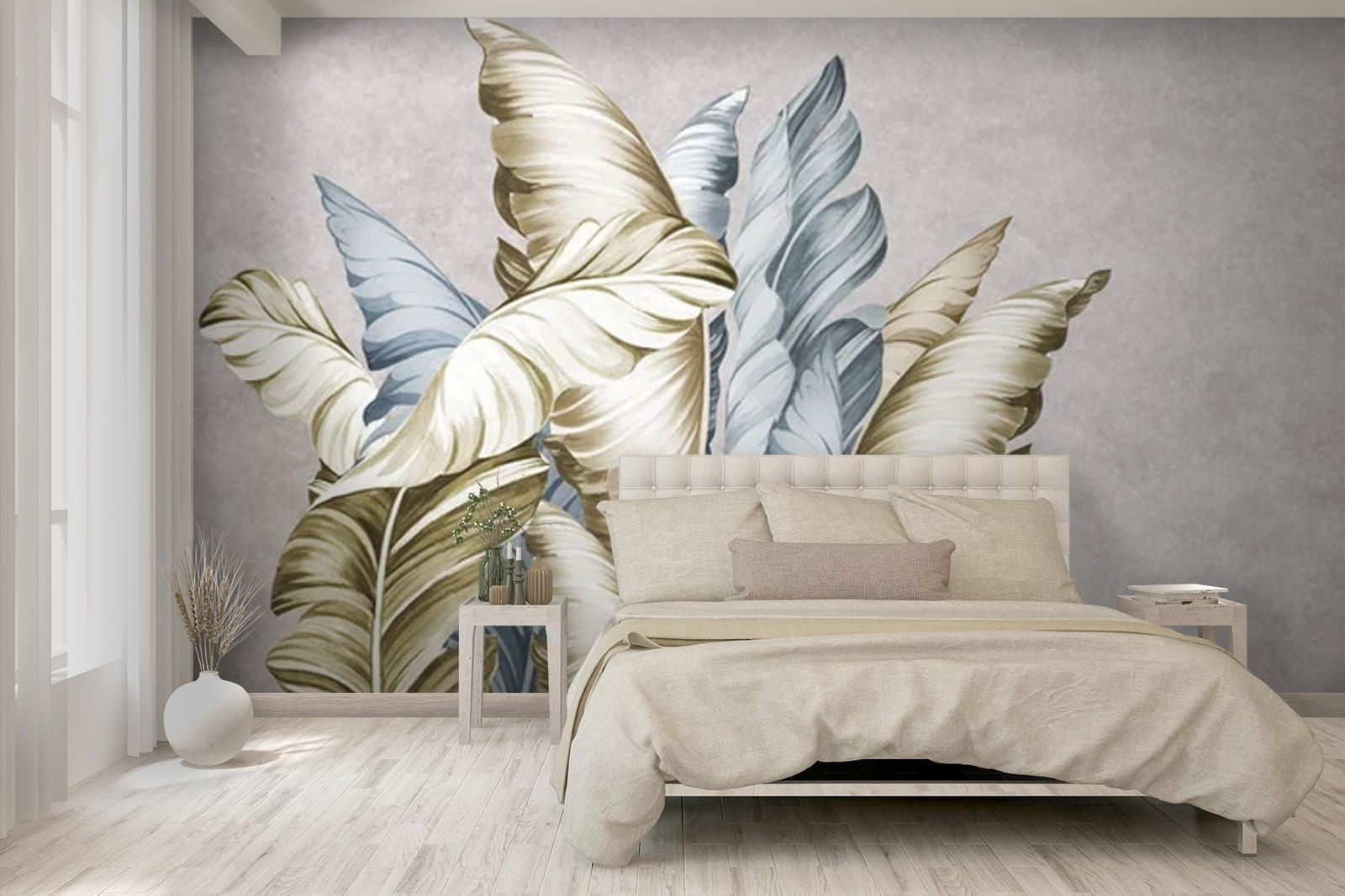 Transform your space with this stunning wall mural that feels like a gentle breeze through a sun-drenched garden. Imagine sipping morning coffee while surrounded by soft, nature-inspired leaf designs—what a way to wake up, right? The muted colors make it cozy yet chic, perfect for any room. It’s like bringing the outdoors inside without the pesky bugs. Whether it’s a tranquil reading nook or lively kitchen, this mural sparks joy and chill vibes. Seriously, who wouldn’t feel a little more zen staring at these beauties? Easy on the eyes and heart, it’s a delightful touch that’s sure to stir up some smiles.