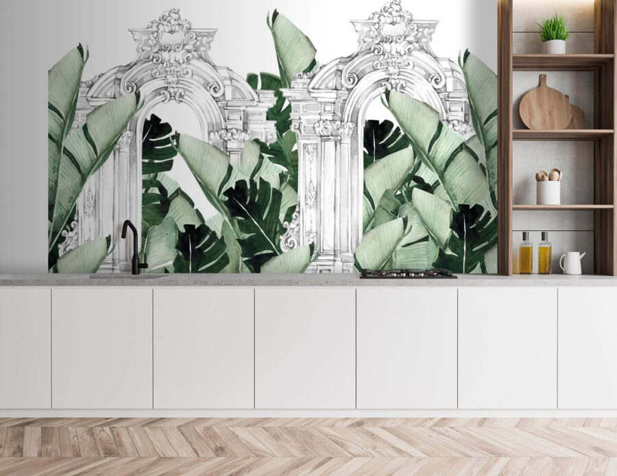 Step into a dreamy oasis with this “Wall Murals White Archway with Green Leaves.” It’s like bringing nature indoors, with lush leaves playfully peeking through elegant archways. Imagine sipping your morning coffee while feeling like you’re in a sunlit garden—seriously, who needs a vacation?