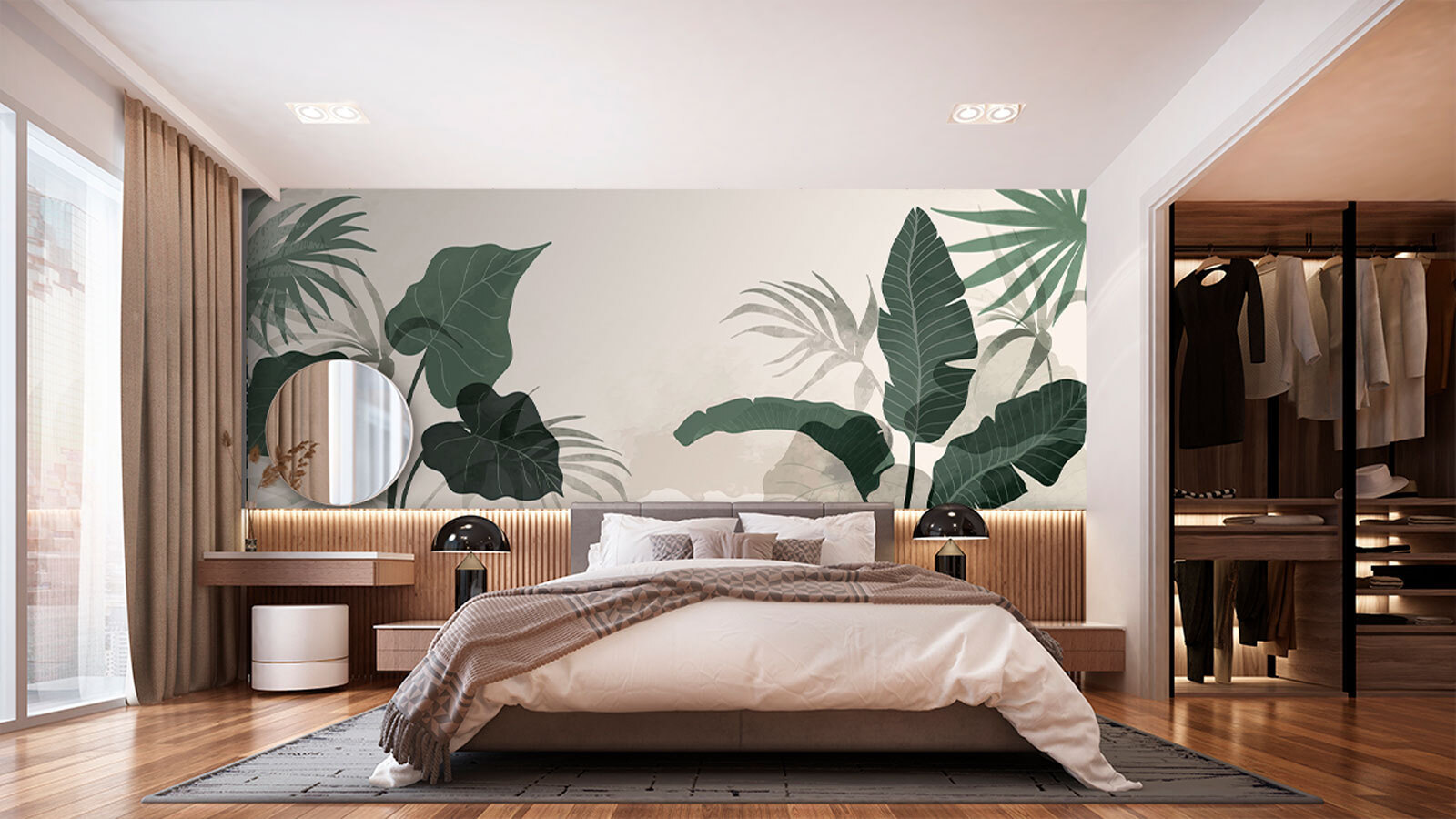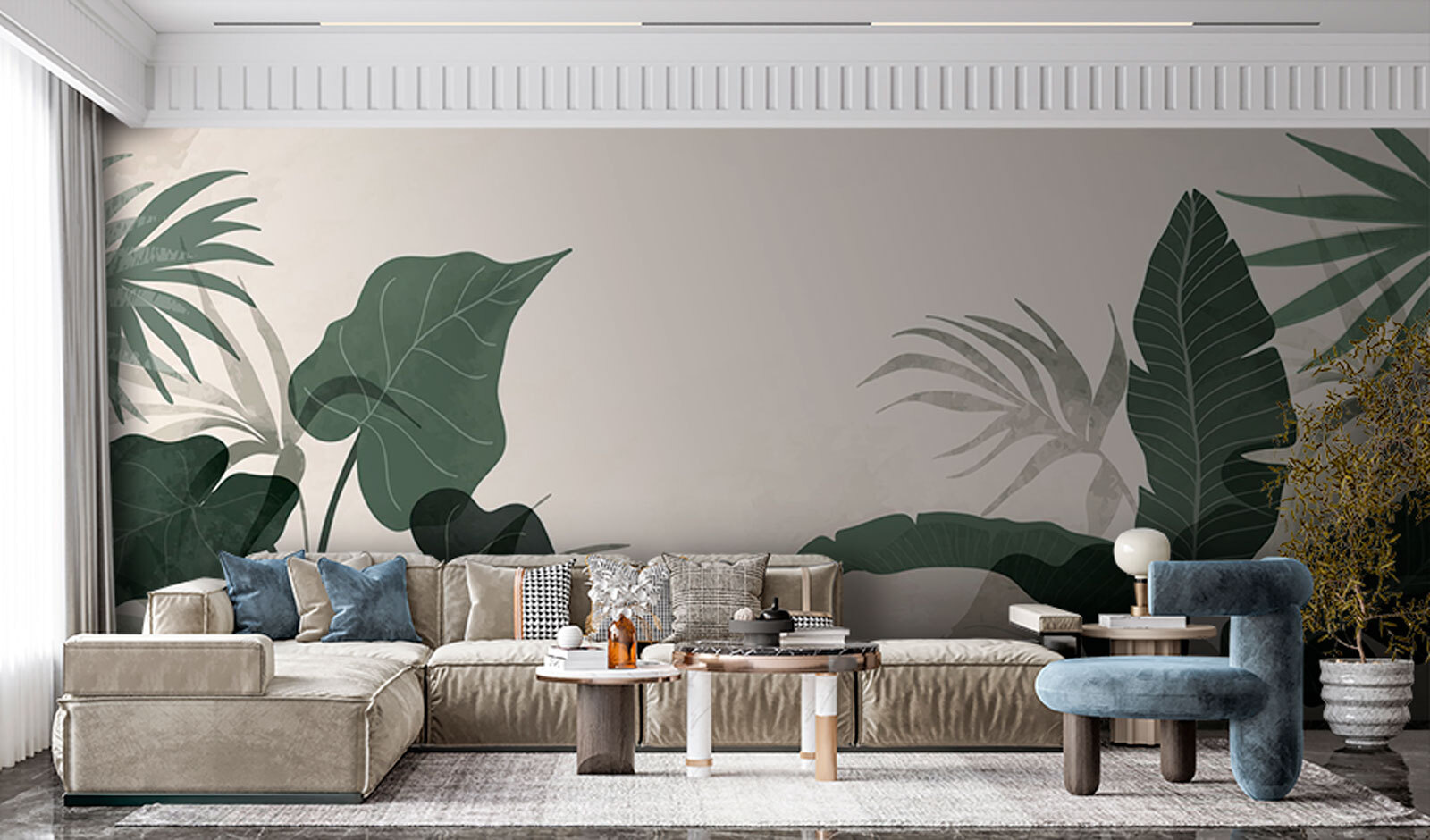 Transform your space with “Wall Murals Lush Greens in Tranquil Harmony.” This mural feels like a gentle hug from nature, wrapping your walls in rich greens and soft shades that just invite you to breathe a little deeper. Imagine sipping your morning coffee here, the leafy vibes making every sip a mini escape to paradise. It’s like having a private jungle oasis—without the pesky bugs! Whether it’s a cozy reading nook or a lively living area, this mural brings serenity and a sprinkle of life into any room. It’s not just wallpaper; it’s a mood—one that says, “Kick back and relax.” Perfect for those craving a touch of nature indoors.