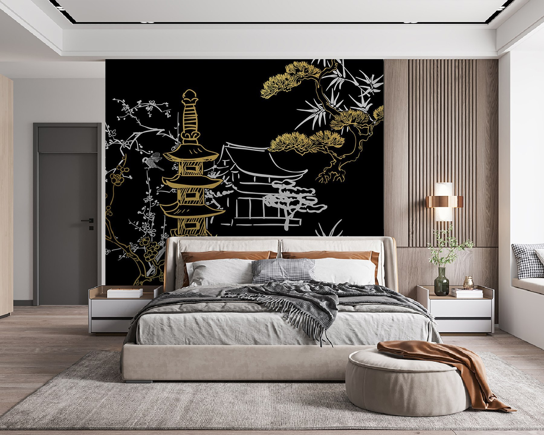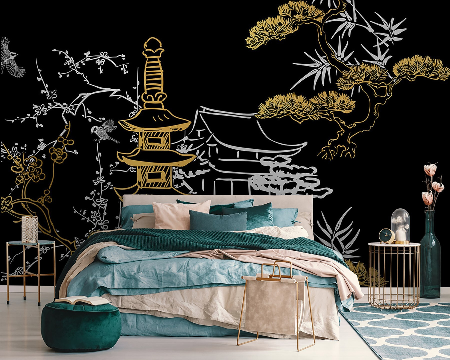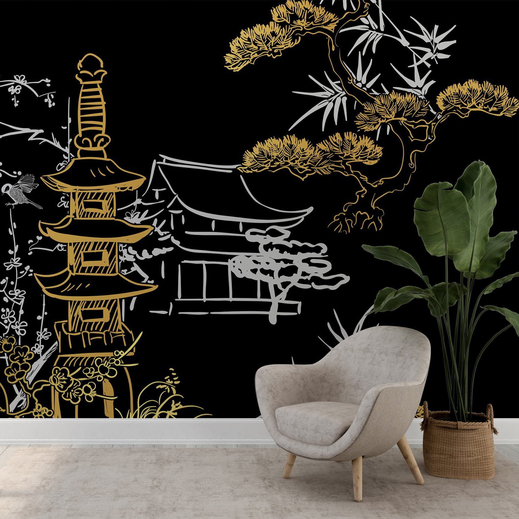 Transformeer je ruimte met deze betoverende muurschildering met een sereen Aziatisch landschap dat verhalen van rust fluistert. Ingewikkelde ontwerpen dansen over een strakke achtergrond, trekken de aandacht en zetten aan tot praten. Stel je voor dat je thee drinkt, omringd door delicate bloesems en elegante pagodes. Het is alsof je een stukje zen naar je woonkamer brengt. Perfect voor een gezellig leeshoekje of een inspirerende werkplek, deze muurschildering nodigt uit tot rust en creativiteit. Het is die kleine ontsnapping aan de dagelijkse chaos, alsof je je eigen rustige tuin hebt, zonder het gedoe van water geven!