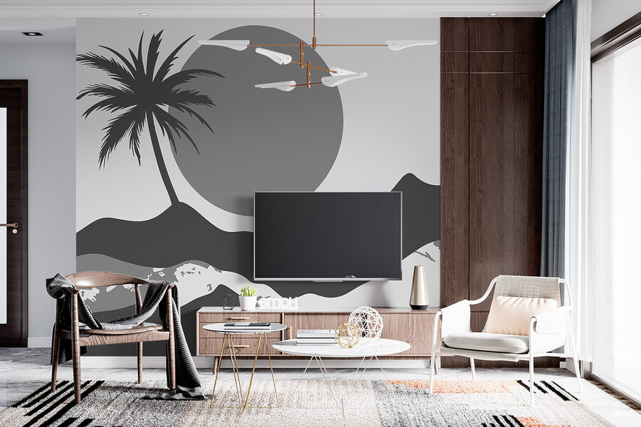 Verander je ruimte in een laid-back paradijs met deze prachtige muurschildering met een palmboom die zich koestert in de warmte van de zon. Stel je voor dat je een kamer binnenstapt die chill vibes en dromerige zonsondergangen uitstraalt. Of het nu in een gezellige woonkamer is of in een lichte keuken, deze muurschildering nodigt uit tot dagdromen over stranduitstapjes en ontspannen middagen. Het brengt een gevoel van rust, waardoor elke ruimte aanvoelt als een mini-vakantie – zonnebrandcrème is niet nodig. Voeg gewoon een paar tropische planten en een comfortabele stoel toe en voila! Oase in een handomdraai. Wie wil er nu niet elke dag ontsnappen naar een stukje paradijs?