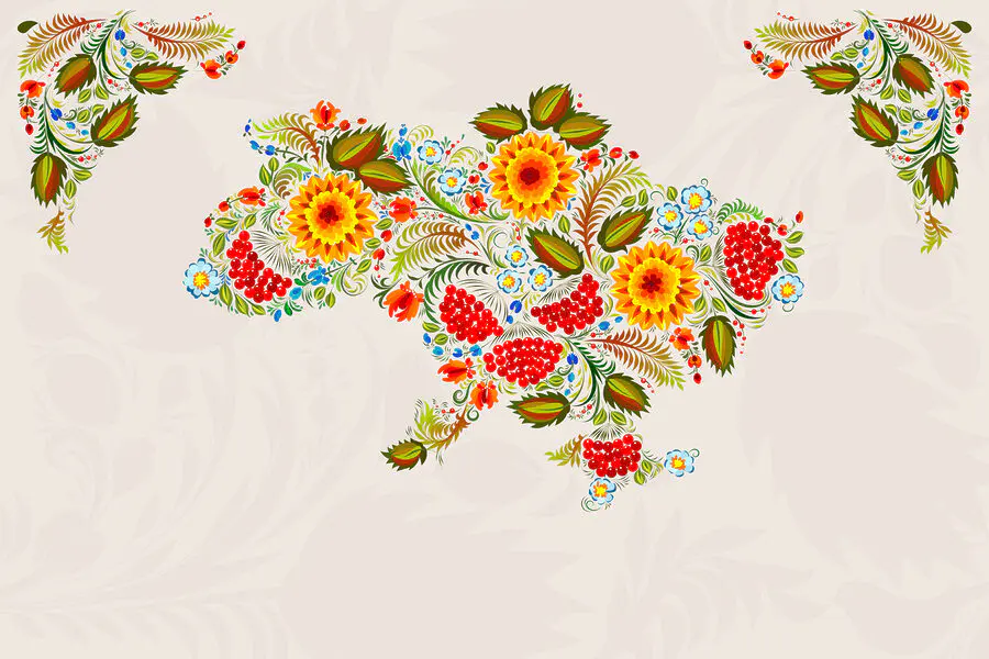 Hallo, decorliefhebber! Maak kennis met deze prachtige muurschildering. Het is een kaart van Oekraïne, maar verruil die saaie lijnen voor opvallende, bloeiende bloemen. Stel je voor dat je kamer doordrenkt is met een uitbarsting van kleur, alsof er net een tuin is binnengewandeld. Die rijke gelen en roden, vermengd met levendig groen – puur plezier! Het is alsof je een kunstwerk hebt dat verhalen over traditie en cultuur vertelt. Ik bedoel, wie wil er nu niet elke dag beginnen met het gevoel dat hij een feest binnenstapt? Perfect voor iedereen die hunkert naar een beetje meer schoonheid en karakter in hun ruimte.