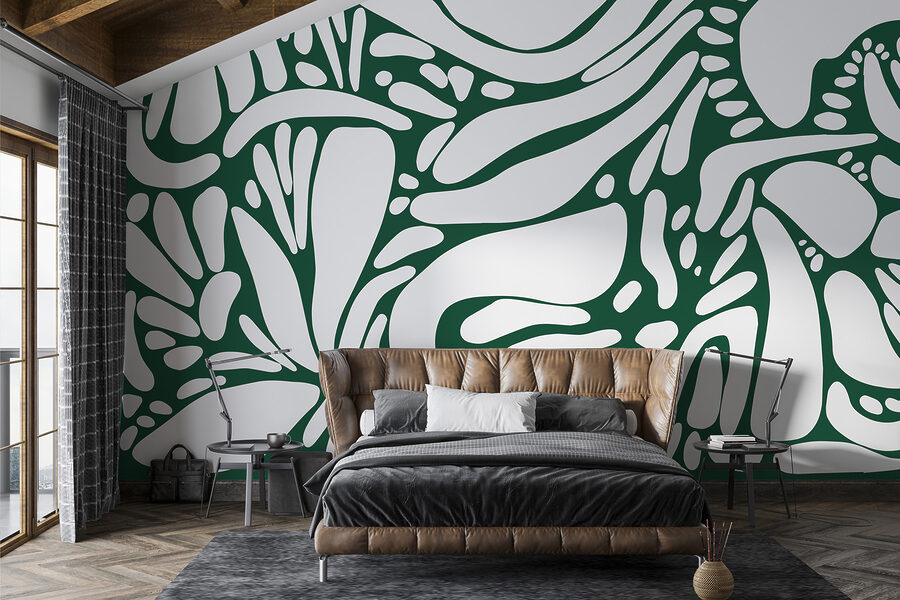Hallo daar! Stel je voor dat je een kamer binnenloopt en bam, je ogen worden begroet door deze woeste muurschildering met een wit en groen patroon. Het is alsof iemand een sereen bos heeft gevangen en op je muur heeft gespat. Perfect als je verlangt naar een vleugje natuur zonder de insecten. De speelse wervelingen en vormen geven een sfeer die zowel rustgevend als stimulerend is. Geweldig voor woonkamers of dat creatieve hoekje waar inspiratie soms een koffiepauze inlast. Je zult er eeuwig naar willen kijken, of in ieder geval tot het weer tijd is om te herinrichten.