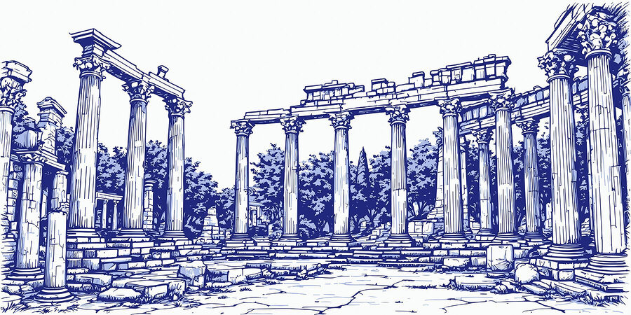 Stap in een wereld van oude charme met deze prachtige muurschildering met een fascinerende stenen structuur versierd met elegante zuilen. Stel je voor dat je je kamer binnenloopt en meteen wordt meegevoerd naar een serene Griekse ruïne, waar het zonlicht door weelderige bomen valt. De rijke details en mooie lijnen nodigen uit tot dagdromen over betoverende geschiedenis en epische verhalen. Het is alsof je een stukje natuur en traditie uitnodigt in je alledaagse ruimte. Deze muurschildering is perfect voor die lege muur en voegt warmte en karakter toe – ideaal voor gezellige avonden of pittige bijeenkomsten. Laat je muren een uniek verhaal vertellen dat tot de verbeelding spreekt!