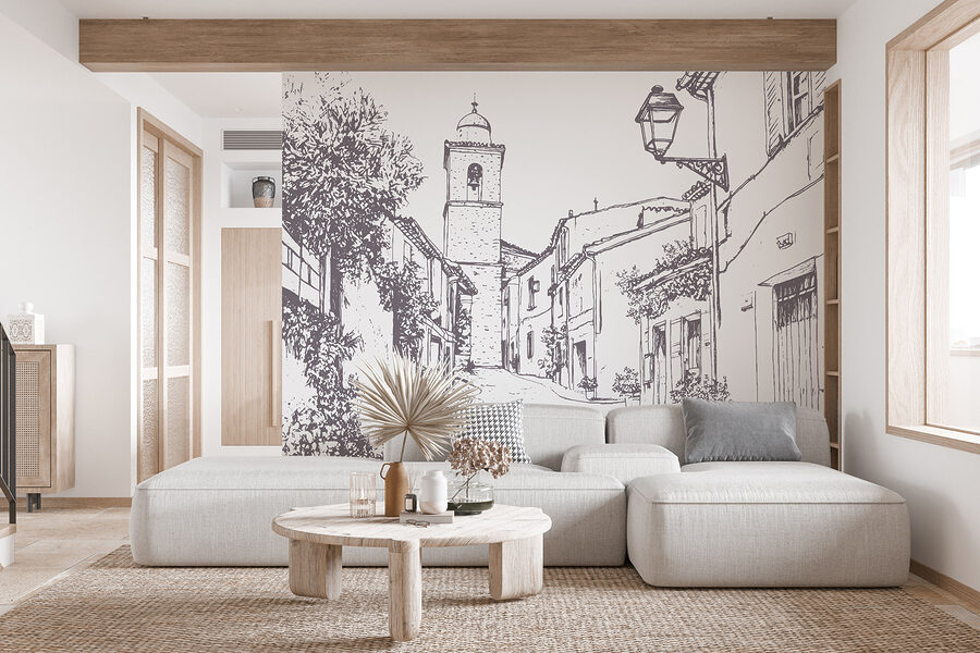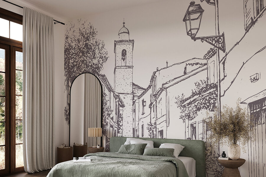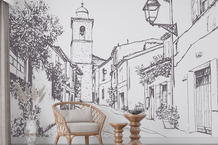 Transformeer elke muur met deze charmante muurschildering van een schilderachtig straatbeeld. Stel je voor: een kronkelend pad met gevels van gebouwen en een mooie klokkentoren, allemaal verpakt in een prachtige schetsstijl. Het is net een mini-uitstapje elke keer als je er langs loopt. Stel je voor dat je een kopje koffie pakt, neerploft in dat knusse hoekje dat je hebt gecreëerd en je gedachten laat dwalen door dat pittoreske steegje. De planten die langs de gebouwen omhoog kruipen voegen een vleugje leven toe en geven een gevoel van warmte en nostalgie. Dit stuk is niet alleen decor; het is een uitnodiging om te dagdromen over zonnige straten en avonturen om de hoek. Perfect voor diegenen die hunkeren naar een vleugje eigenzinnigheid in hun ruimte!