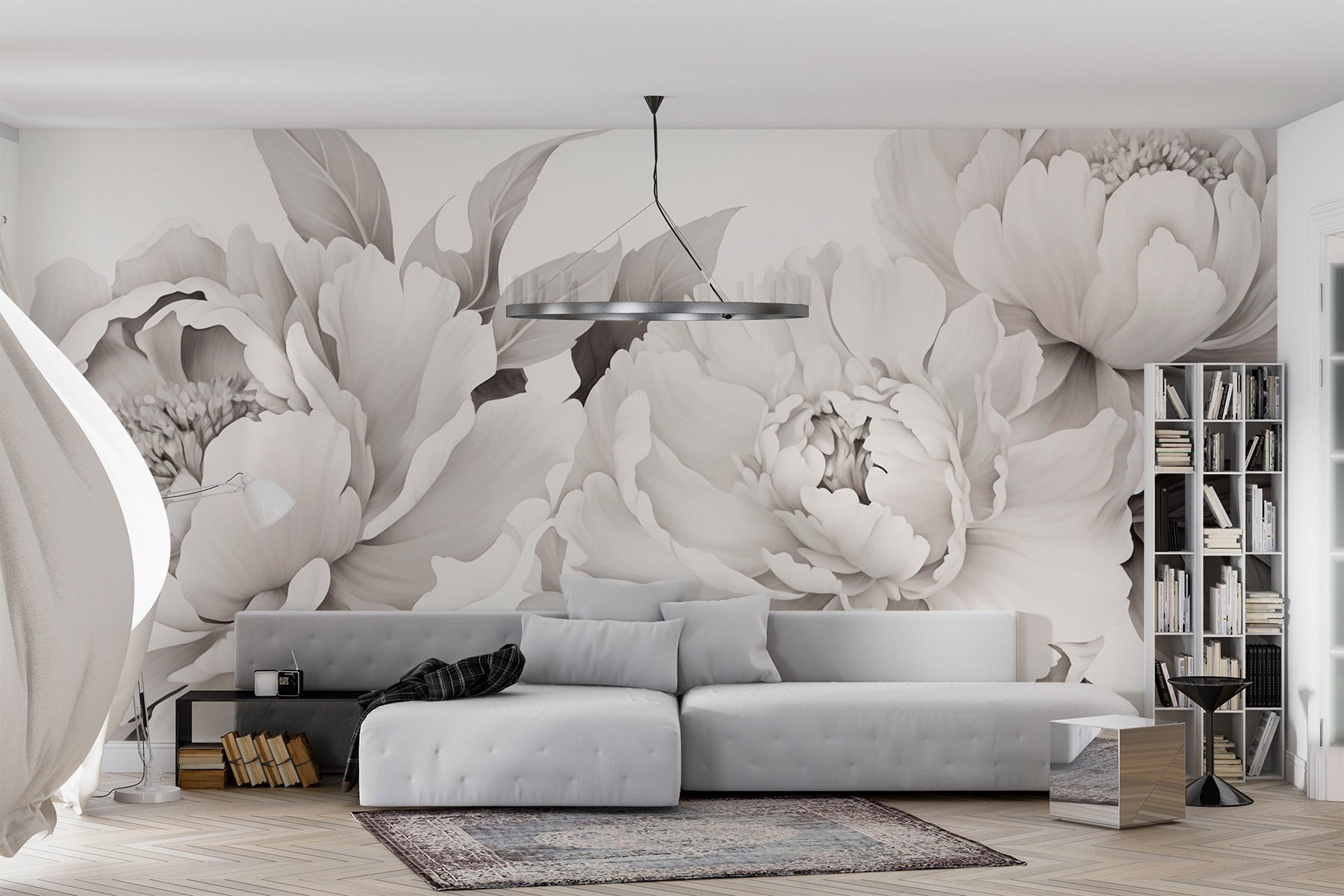 Transformeer je kamer met de muurschildering “Elegante bloemen op een zachte achtergrond”. Stel je voor dat je een kamer binnenloopt waar bloemenpracht je begroet – grote, weelderige pioenrozen die hun bloemblaadjes uitstrekken in een zachte omhelzing. Het is alsof je een tuin in huis haalt, zonder de gieter en de vervelende insecten. De zachte tinten creëren een rustgevende sfeer, perfect voor een gezellige leeshoek of een chique woonruimte. Vrienden zullen stoppen en bewonderen en misschien zelfs vragen of er ergens een geheime tuin verborgen is. Deze muurschildering is niet alleen decor; het is een dagelijkse dosis charme van de natuur, die de muren verandert in een canvas van vreugde!