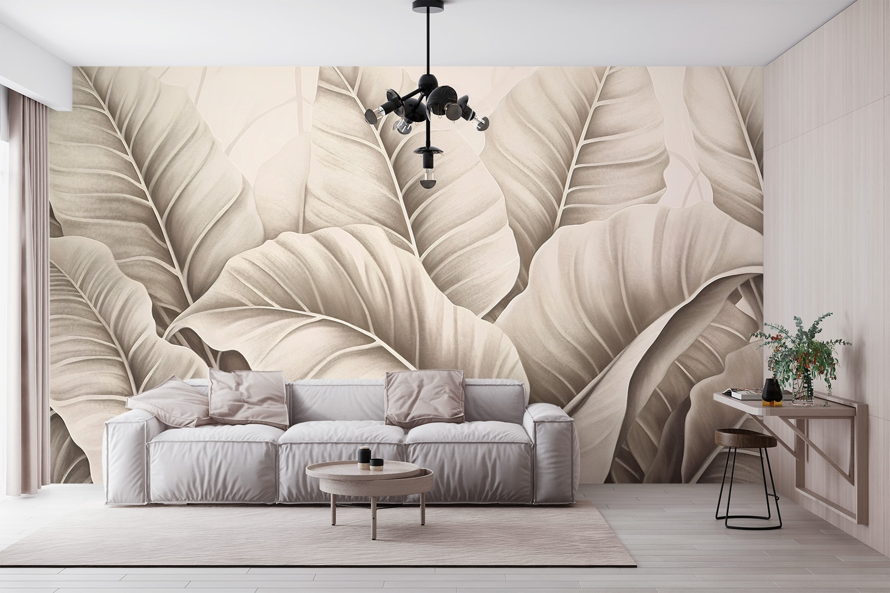 Tover een kamer om in een serene oase met de muurschildering Softly Layered Leaves. Deze schoonheid brengt een vleugje natuur binnenshuis en hult elke ruimte in zachte, aardse tinten die comfort uitstralen. Stel je voor dat je met een boek in een knus hoekje zit, omringd door deze weelderige bladeren die bijna echt lijken – het gevoel van een vredig toevluchtsoord in het bos. Of het nu een woonkamer of een rustige studeerkamer is, deze muurschildering nodigt moeiteloos uit tot rust. Bovendien is het een combinatie van stijl en warmte; wie wil niet het gevoel hebben dat hij in een chique, groen toevluchtsoord woont?
