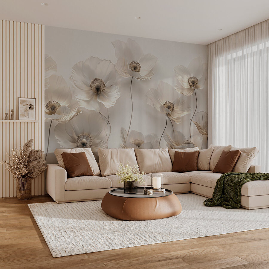 Fleur elke kamer op met deze prachtige muurschildering met een mooie groep witte bloemen die aanvoelt als een zachte lentebries. Stel je voor dat je de ruimte binnenstapt en begroet wordt door hun zachte elegantie, die een gevoel van rust brengt. Deze bloemen zijn niet alleen mooi, ze blazen leven in een saaie muur en veranderen hem in een gezellig hoekje van de natuur. Perfect voor een woonkamer of slaapkamer, ze zullen niet alleen in het oog springen maar ook uitnodigen tot een gesprek. Wie wil er nou niet praten over die prachtige bloemen? Het is net alsof je een tuin binnenshuis hebt, zonder de gieter. Voeg een vleugje eigenzinnigheid en charme toe met deze muurschildering en laat de bloemenmagie zich ontvouwen.
