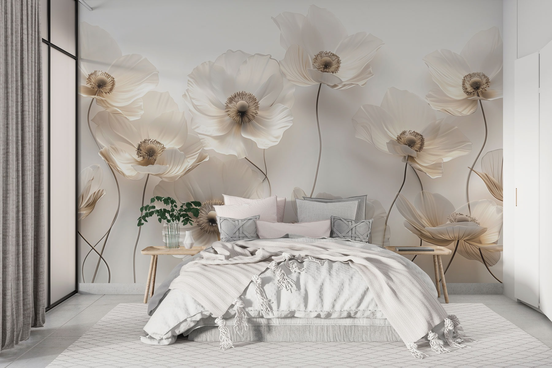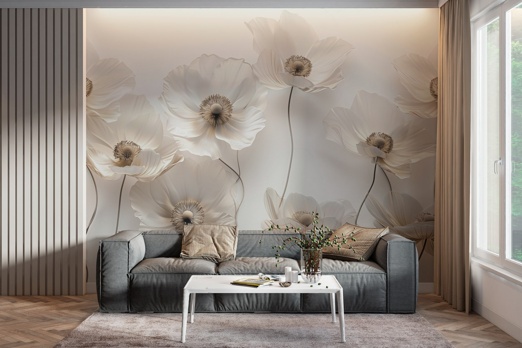 Fleur elke kamer op met deze prachtige muurschildering met een mooie groep witte bloemen die aanvoelt als een zachte lentebries. Stel je voor dat je de ruimte binnenstapt en begroet wordt door hun zachte elegantie, die een gevoel van rust brengt. Deze bloemen zijn niet alleen mooi, ze blazen leven in een saaie muur en veranderen hem in een gezellig hoekje van de natuur. Perfect voor een woonkamer of slaapkamer, ze zullen niet alleen in het oog springen maar ook uitnodigen tot een gesprek. Wie wil er nou niet praten over die prachtige bloemen? Het is net alsof je een tuin binnenshuis hebt, zonder de gieter. Voeg een vleugje eigenzinnigheid en charme toe met deze muurschildering en laat de bloemenmagie zich ontvouwen.