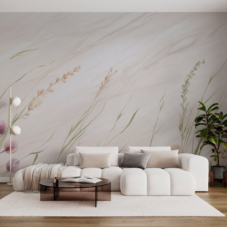 Transformeer elke ruimte met deze prachtige muurschildering, “Nature’s Gentle Touch on Canvas”. Stel je voor dat je een kamer binnenloopt vol wuivende grassen en zachte bloemen die geheimen van de lente lijken te fluisteren. De zachte kleuren geven een kalme sfeer en creëren een knusse plek om je thuis te voelen. Het is alsof je een vredige tuin binnenshuis haalt zonder de gieter. Zie het voor je in een woonkamer of zelfs een leeshoekje – perfect voor die luie middagen waarop een beetje dagdromen precies goed klinkt. Deze muurschildering decoreert niet alleen, maar nodigt je uit om even stil te staan en de sereniteit op te snuiven telkens als je binnenkomt.