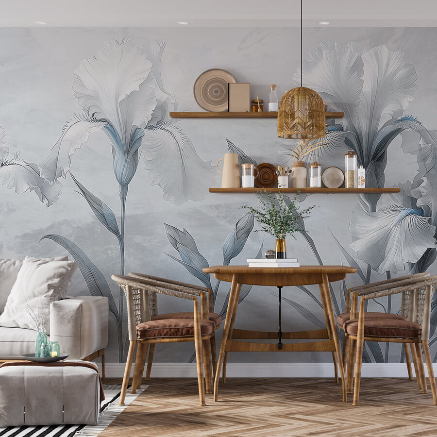 Verander een effen muur in een dromerige oase met deze prachtige muurschildering met delicate irisbloemen in zachte tinten. Stel je voor dat je een ruimte binnenloopt waar deze elegante bloemen zachtjes op de muur dansen en voor een onmiddellijke rust zorgen. De zachte tinten geven een serene sfeer, perfect voor elke kamer die wel wat liefde kan gebruiken. Stel je voor dat je op een luie ochtend aan je koffie nipt en het gevoel hebt dat je wordt opgebeurd door de bloemen. Het is alsof je een tuin hebt die altijd in bloei staat, zonder het water geven! Deze muurschildering is niet alleen decor; het is een uitnodiging om even stil te staan, adem te halen en de schoonheid om je heen te omarmen. Perfect voor het creëren van een gezellig hoekje of een serene achtergrond, het is een mooie keuze die stijl uitstraalt zonder te schreeuwen.