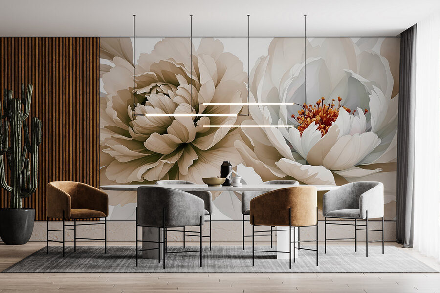 Transformeer je ruimte met een vleugje elegantie. De muurschildering “Elegante bloemen in zachte tinten” brengt een zachte, dromerige sfeer in elke kamer. Stel je voor dat je wakker wordt met deze prachtige bloemen, hun zachte kleuren die rust uitstralen. Het is alsof je een geheime tuin aan de muur hebt, zonder dat je water hoeft te geven. Combineer het met gezellige verlichting – misschien een warme lamp in de hoek – en je hebt een vredig hoekje om thee te drinken of een goed boek te lezen. Vrienden zullen denken dat je gevoel voor design hebt. Het is zo uitnodigend dat je er misschien wel een tuinfeestje in wilt geven!