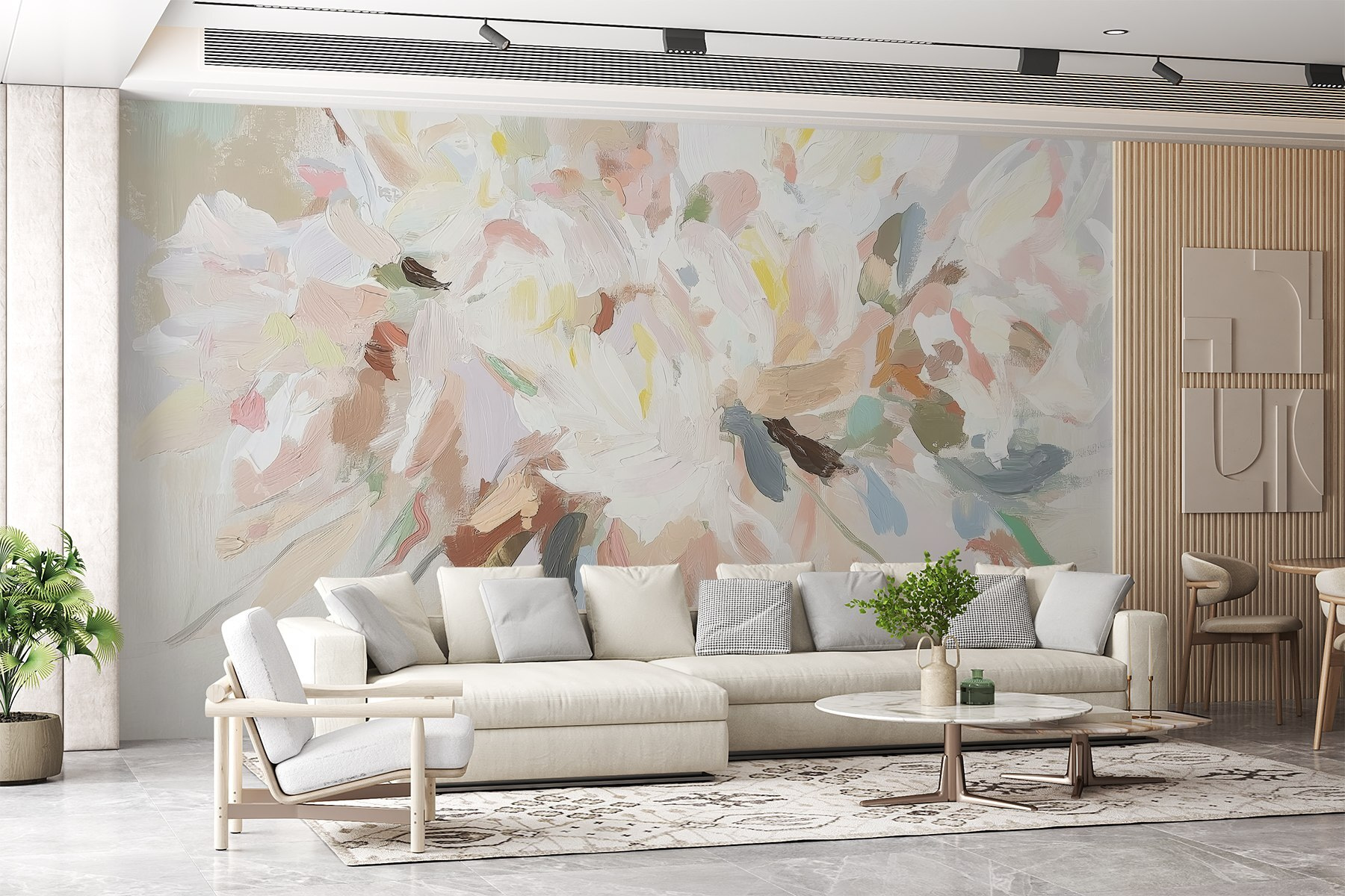 Stel je voor dat je een kamer binnenstapt en begroet wordt door een uitbarsting van bloemen die op je muur bloeien. De zachte bloemblaadjes en zachte tinten van deze muurschildering creëren een rustige sfeer, als een vredig tuinverblijf zonder insecten. Het is alsof je een stille vriend hebt die het hele jaar door zoete lenteliedjes fluistert. Perfect voor een woonkamer of dat hoekje waar je maar geen raad mee weet, brengt het een lichtheid die de gemoederen opvrolijkt. Sluit je ogen en je kunt de bloesems bijna ruiken. Deze muurschildering is niet alleen decor; het is een ervaring die in elke ruimte tot bloei komt.