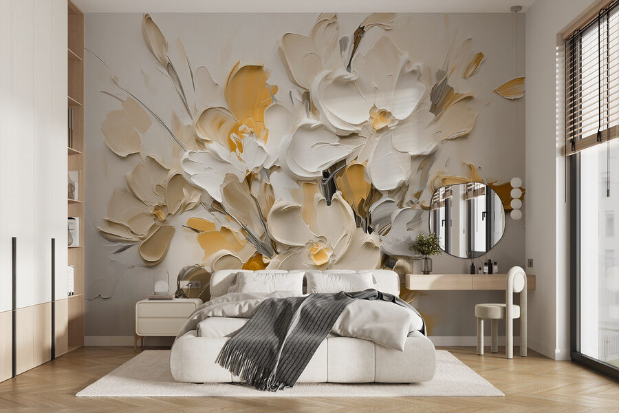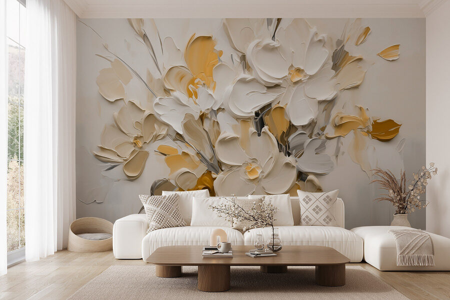 Transformeer je ruimte met deze prachtige muurschildering van bloemen in een vaas. Het is alsof je een tuin in huis haalt zonder dat je je zorgen hoeft te maken over water geven! De zachte crèmekleurige en gele tinten voegen warmte toe, waardoor het voelt als een knusse knuffel telkens als je langsloopt. Stel je voor dat je aan je ochtendkoffie nipt terwijl deze bloemen vrolijk toekijken – een kleine dagelijkse dosis sereniteit. Perfect voor die saaie muur die wel wat liefde kan gebruiken of een vrolijke achtergrond voor bijeenkomsten. Het is niet alleen decor; het is een sfeermaker, een dagelijkse herinnering dat de schoonheid van de natuur elke kamer kan opfleuren.