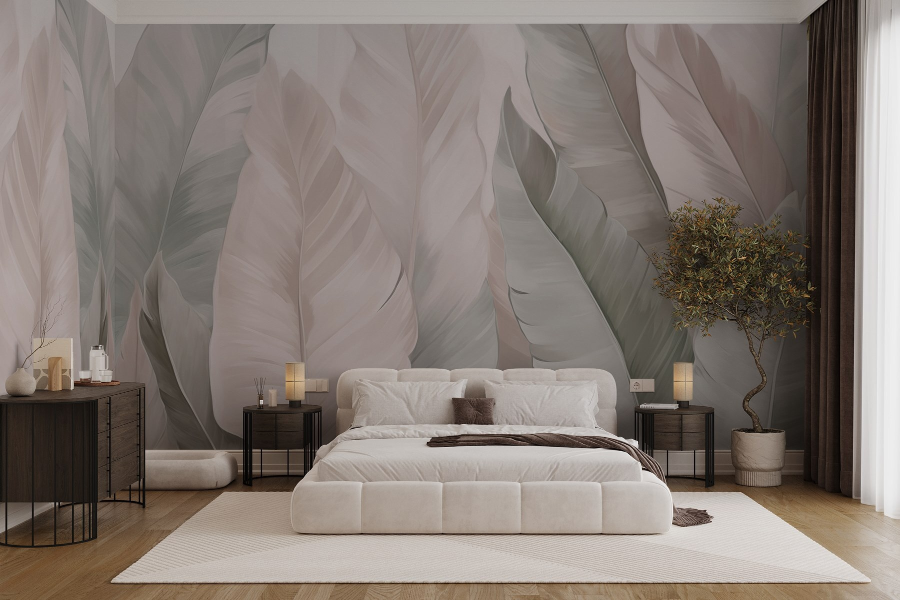 Stel je voor: een serene ruimte die is getransformeerd met de prachtige muurschildering “Soft Leaves in Gentle Hues”. Deze schoonheid blaast leven in een kamer, waardoor het voelt als een gezellig toevluchtsoord in een bos. Het zachte groen en de rustgevende roze tinten nodigen uit tot kalmte en creëren een achtergrond die ontspanning uitstraalt. Stel je voor dat je een kopje thee drinkt, omringd door deze elegante bladeren, met het gevoel alsof de natuur bij je komt zitten voor een praatje. Het is perfect voor elke plek die een beetje warmte kan gebruiken – woonkamers, slaapkamers of zelfs dat kleine leeshoekje. Wees niet verbaasd als je jezelf hier betrapt op dagdromen!