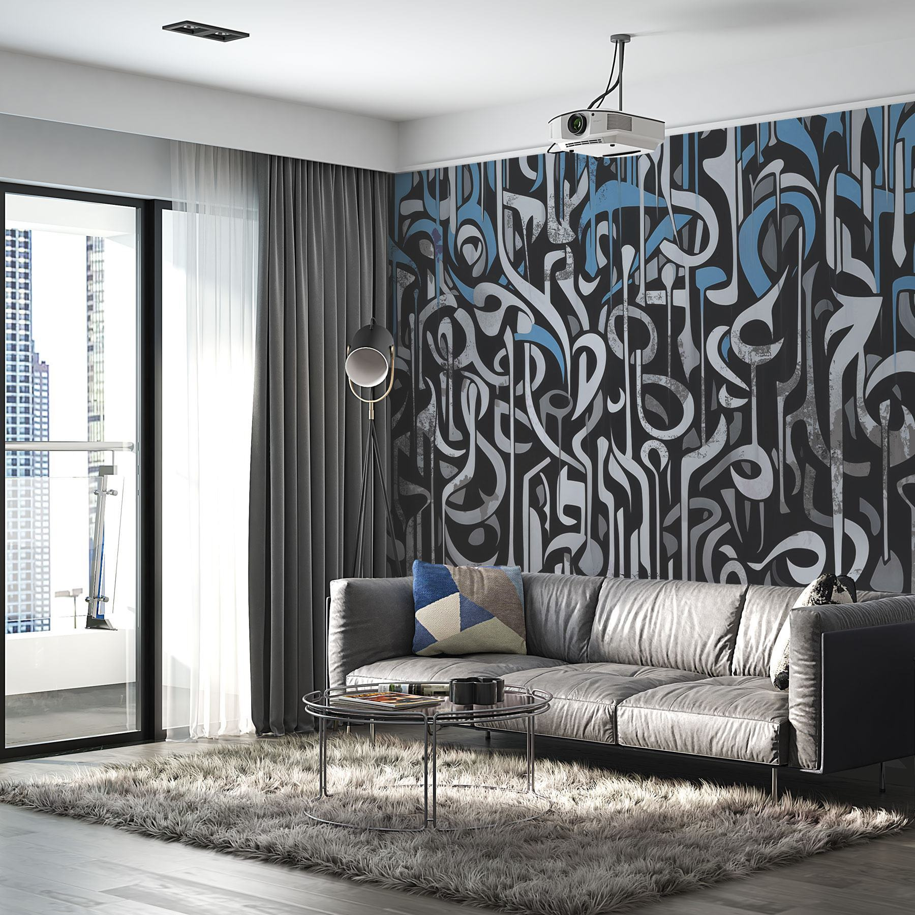 Transformeer je ruimte met deze prachtige muurschildering, een boeiende mix van zwarte, witte en opvallende blauwe lijnen. Het is alsof je een moderne kunstgalerie bij je thuis binnenstapt. Stel je voor: je loopt de kamer binnen en je ogen dansen meteen over de gedurfde, wervelende patronen. Het voegt diepte, karakter en precies de juiste hoeveelheid intrige toe. Vrienden zullen je zeker vragen “Waar heb je dat vandaan?”. En niet te vergeten, het vormt de perfecte achtergrond voor gezellige praatjes of levendige bijeenkomsten. Een eenvoudige maar krachtige manier om elke muur te laten stralen – maak je klaar om je geïnspireerd te voelen elke keer als je er naar kijkt!