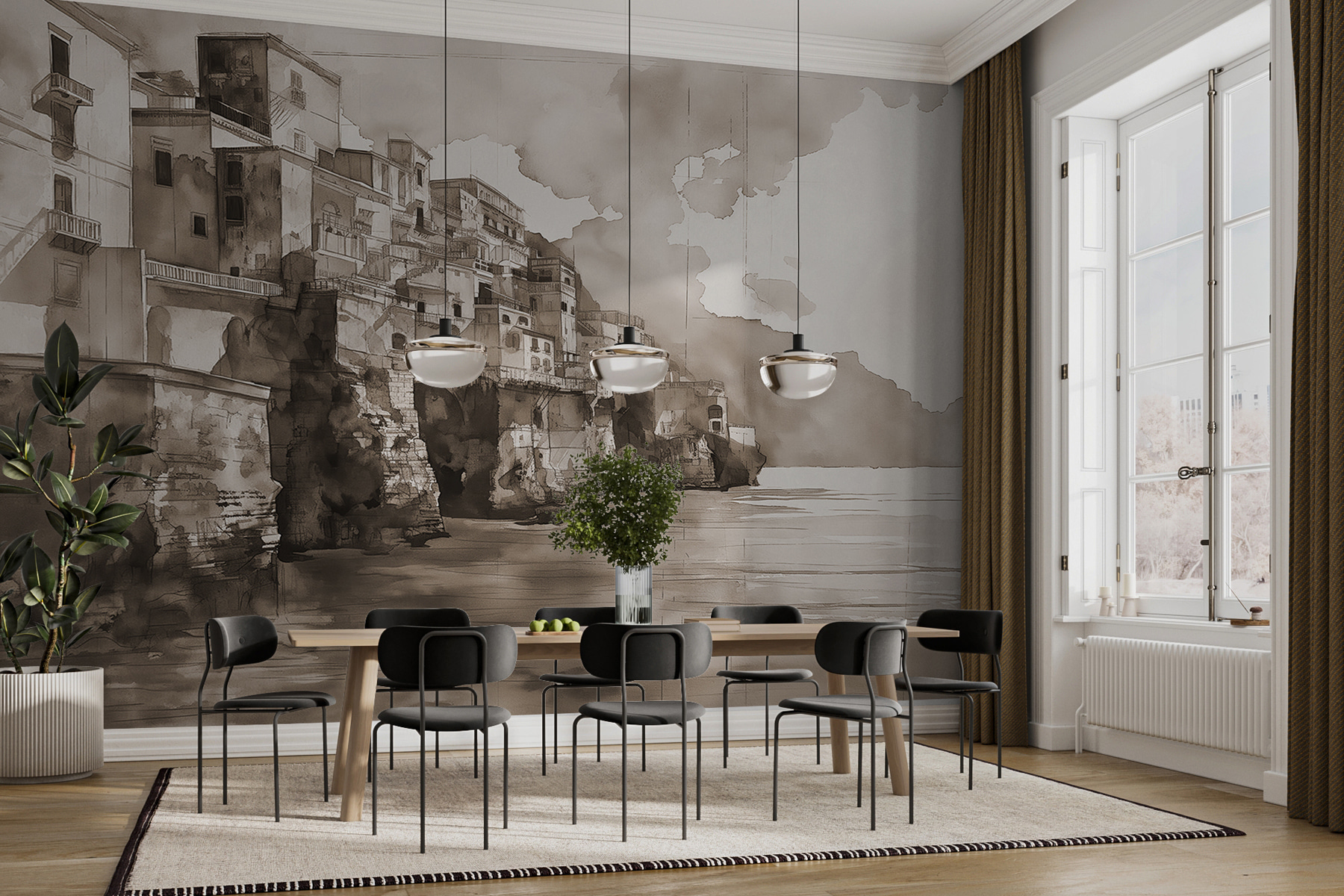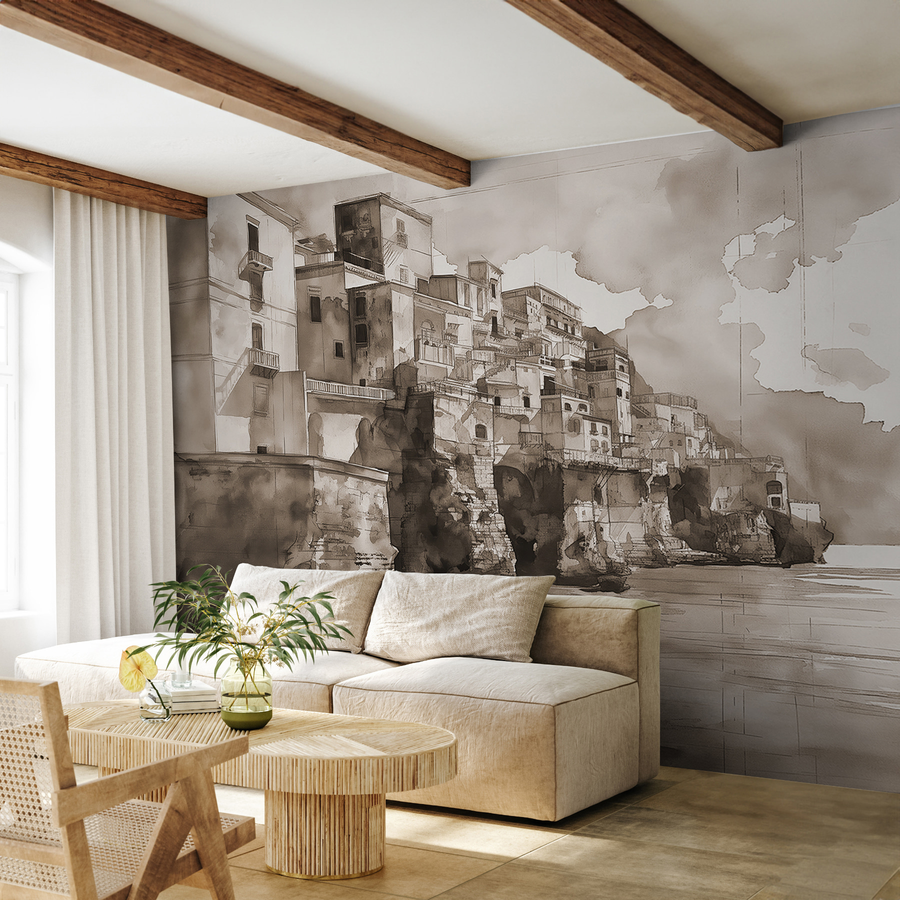 Stel je voor dat je wakker wordt en een stadslandschap ziet dat verhalen lijkt te vertellen over verborgen steegjes en drukke markten. Deze aquarel muurschildering hult je in de charme van een ouderwetse stad, gewoon in je woonkamer. Het is net alsof je een minivakantie hebt elke keer dat je er even naar kijkt. De gedempte tinten en kleurspoelingen creëren een rustgevende sfeer, perfect om een paar dagdromen op te wekken. Of je nu in je luie stoel zit met een kopje koffie of vrienden ontvangt, deze muurschildering zal zeker gesprekken op gang brengen en misschien zelfs leiden tot een spontaan reisplan!