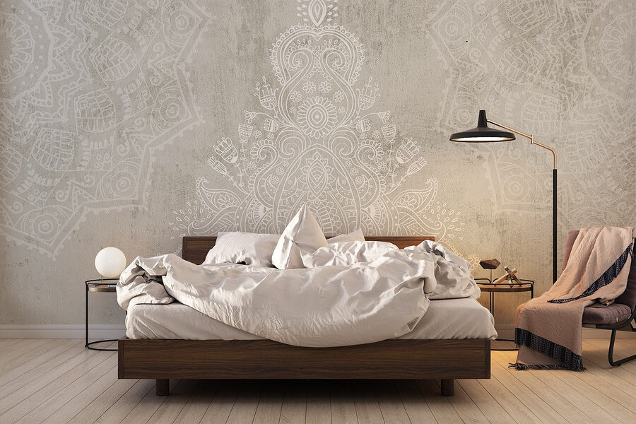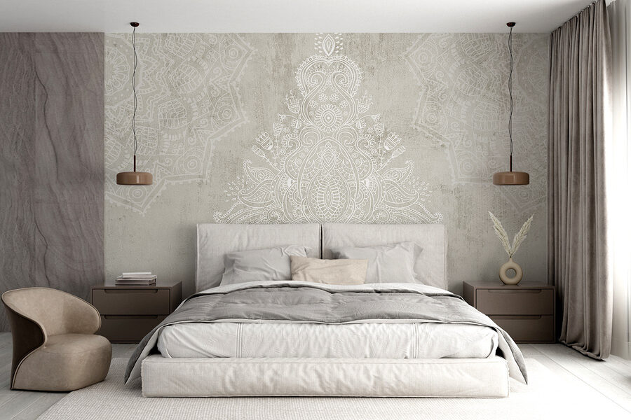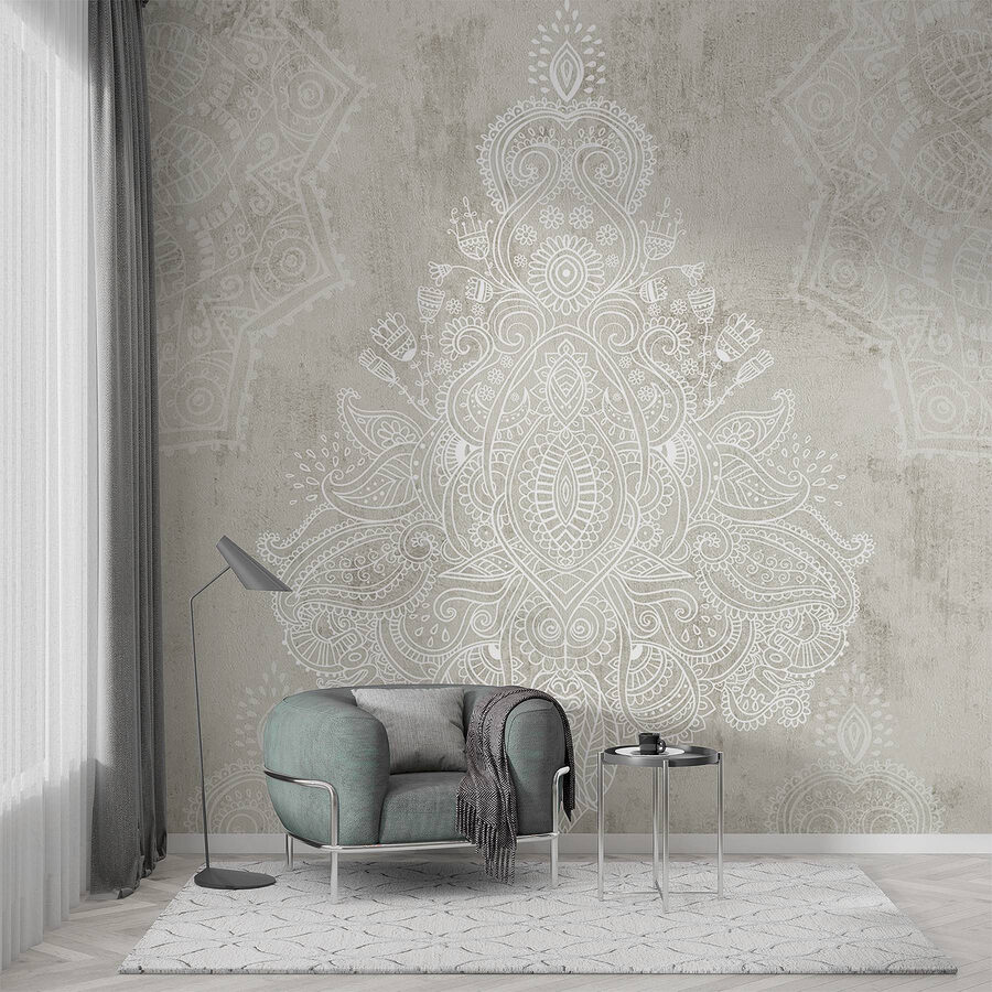 Transformeer je ruimte met deze prachtige muurschildering die helemaal in het teken staat van rust en tijdloze elegantie. De ingewikkelde witte en grijze patronen dansen over de achtergrond en creëren een rustgevende sfeer die perfect is om tot rust te komen na een lange dag of om een vleugje chic toe te voegen aan je weekendborrels. Stel je voor dat je ‘s ochtends aan je koffie nipt voor deze prachtige muurschildering, met het gevoel alsof je een sereen café in Parijs bent binnengestapt. Het heeft die moeiteloze stijl waardoor mensen zeggen: “Wow, waar heb je dat vandaan?”. Ideaal voor woonkamers of gezellige hoekjes – het is alsof je je muren een kleine knuffel geeft!