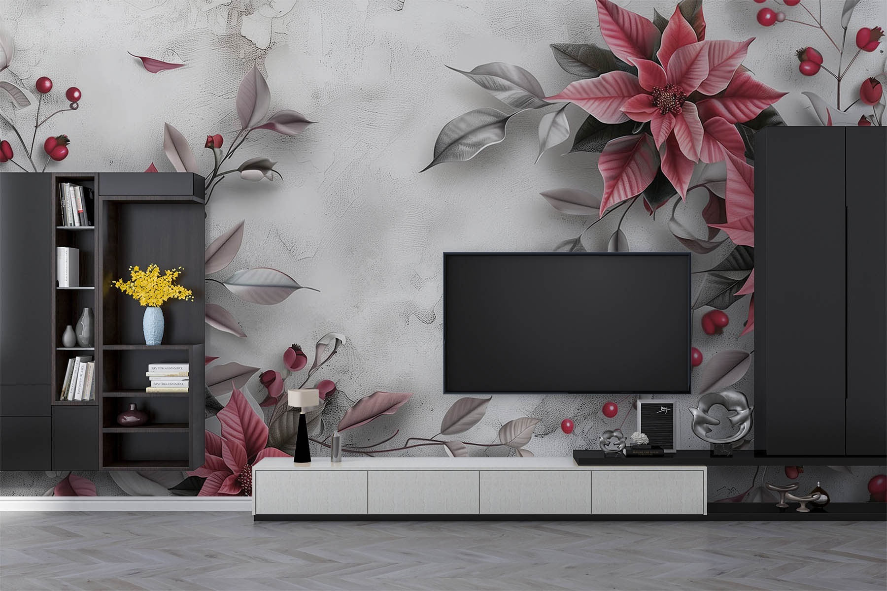Transformeer elke ruimte met deze charmante muurschildering met een elegant bloemstuk in zachte tinten. Stel je eens voor dat je een kamer binnenloopt die aanvoelt als een gezellige tuin, waar delicate tinten naadloos overgaan in serene ontwerpen. Het is alsof de natuur heeft besloten een kijkje binnenshuis te nemen. Deze muurschildering is perfect voor mensen die hunkeren naar een vleugje eigenzinnigheid zonder te overdrijven en voegt warmte en diepte toe aan elke muur. Stel je voor dat vrienden samenkomen en praten over hoe de bloemen over het oppervlak lijken te dansen. Het gaat allemaal om het creëren van die uitnodigende sfeer, perfect om in te loungen of creatieve gesprekken op gang te brengen.