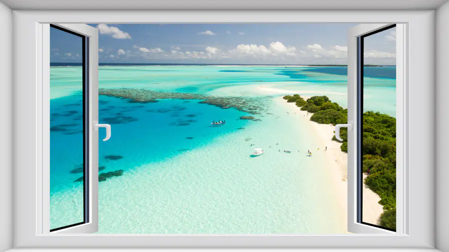 Stel je dit eens voor: Je luiert op je bank, maar in plaats van naar gewone muren te staren, kijk je elke dag naar een adembenemend tropisch paradijs. Deze muurschildering, Serene View Through Open Window, is als een minivakantie voor je ogen. Het aquablauw en het weelderige groen knallen door het open raam en geven je het gevoel dat je zo die zanderige kustlijn in kunt stappen. Perfect voor die sombere dagen waarop je even wilt ontsnappen. Een must-have voor iedereen die van het strand droomt maar ergens woont waar het minder spannend is. Waarom genoegen nemen met saaie muren als je dit serene uitzicht kunt hebben? Bovendien zal het zeker een gespreksonderwerp zijn! Stel je voor dat vrienden langskomen en uitroepen: “Wauw, waar kan ik zo’n reis boeken?”. Het verbetert niet alleen je ruimte, het transformeert hem ook.
