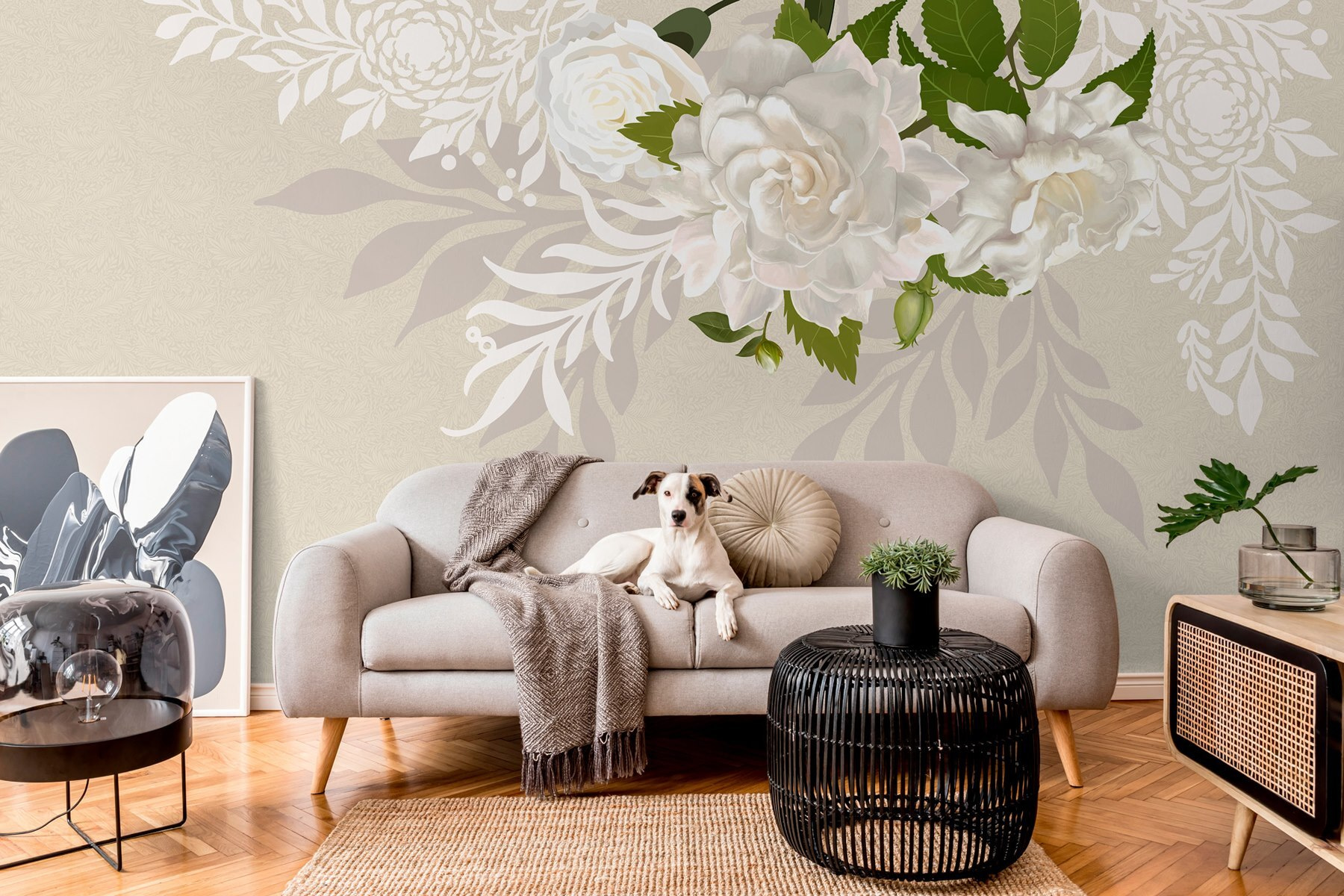 Transformeer je ruimte met een heerlijk vleugje natuur met deze “Fotobehang White Flowers with Green Leaves”. Stel je voor dat je een kamer binnenstapt waar zachte witte bloemen en weelderige groene bladeren je begroeten als een oude vriend. De zachte kleuren dansen op de muur en bieden een rustig toevluchtsoord uit de drukte van de dag. Of je nu een gezellige woonkamer of een serene slaapkamer decoreert, deze muurschildering voegt een vleugje elegantie en warmte toe. Het is alsof je een geheime tuin naar binnen haalt. Bovendien is het een geweldige gespreksstarter – wie wil er nou niet over bloemen praten? Haal een stukje natuur in huis!