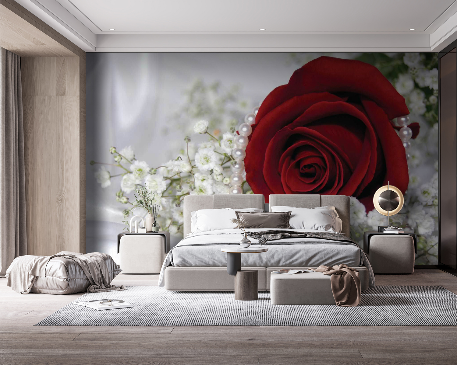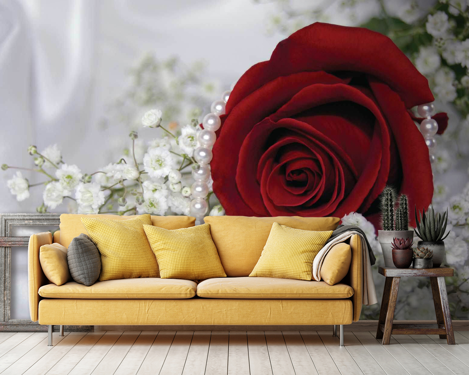 Transformeer uw ruimte met de prachtige “Muurschilderingen Rode Roos en Witte Bloemen”. Stel u voor dat u een kamer binnenloopt waar een levendige rode roos moeiteloos danst tussen delicate witte bloemen. Het is alsof u een stukje natuur aan uw muur heeft, maar dan zonder de pollenallergieën! Deze muurschildering verfraait niet alleen een ruimte, maar zet ook gesprekken op gang. Gasten zullen zich verbazen over de manier waarop het warmte en charme uitstraalt en een gezellige sfeer creëert. Stel je een regenachtige dag voor, met een kopje thee in je hand, terwijl deze muurschildering je omhult met zijn levendige uitstraling. Het is alsof je muren een zachte knuffel krijgen, die vreugde en een vleugje verfijning uitstraalt. Deze muurschildering is perfect voor een woonkamer of een romantische slaapkamer en zorgt ervoor dat elke dag een speciale gelegenheid lijkt. Wie had gedacht dat decoreren zo gemakkelijk en leuk kon zijn? Omarm de schoonheid en laat je muren een verhaal vertellen.