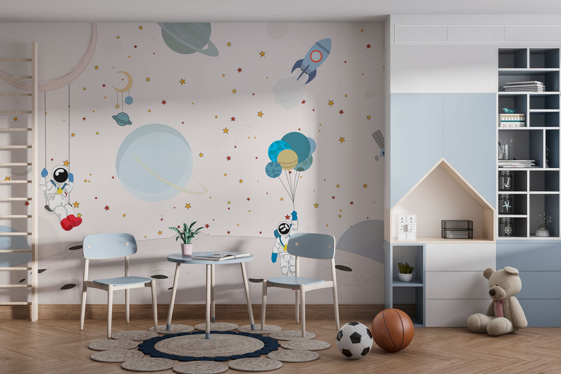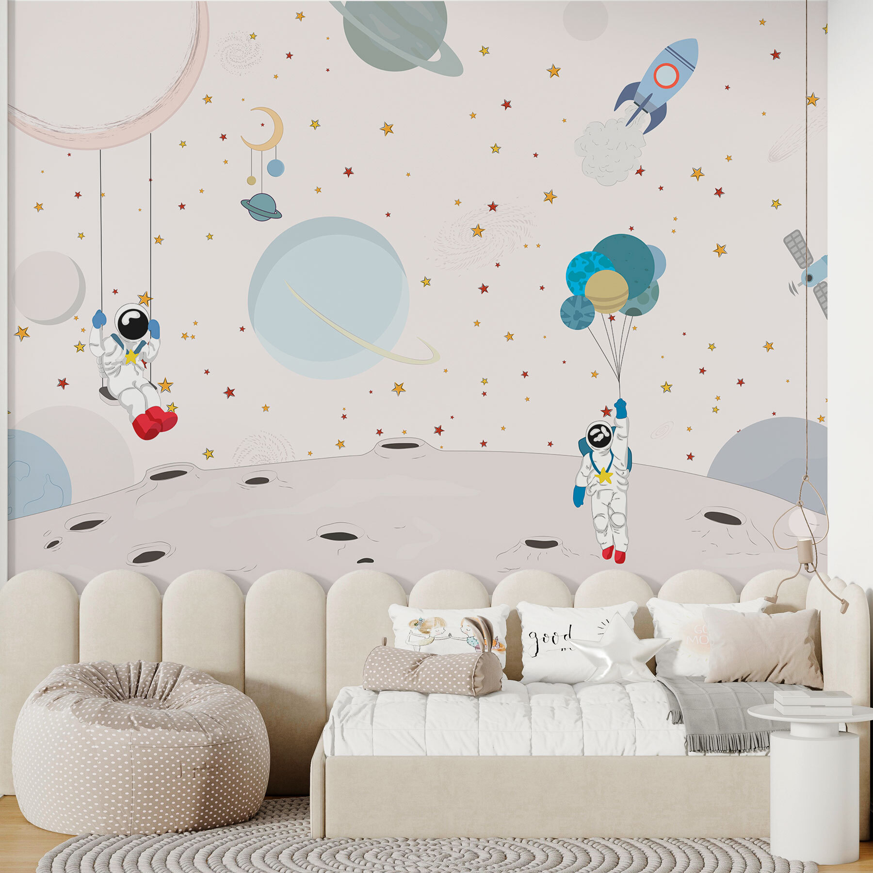 Droom een beetje met “Muurschilderingen w01489”! Ooit gedacht aan een sterrenstelsel in je woonkamer? Nou, hier is je kans. Deze muurschildering is een grillige mix van sterren, planeten en onze schattige astronautjes die de tijd van hun leven hebben op de maan. Perfect voor iedereen die altijd met zijn hoofd in de wolken loopt of in de sterren! Stel je voor dat je onder een dromerige nachtelijke hemel ligt te loungen terwijl je thee drinkt of je favoriete boek leest. Het is alsof je een klein stukje van de kosmos bij je thuis uitnodigt. Pure magie, nietwaar? 🌌✨
