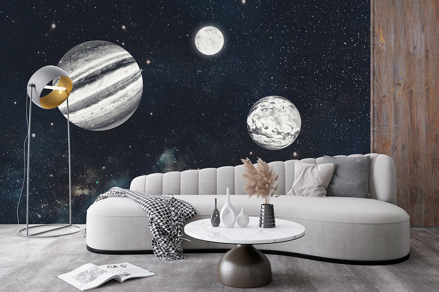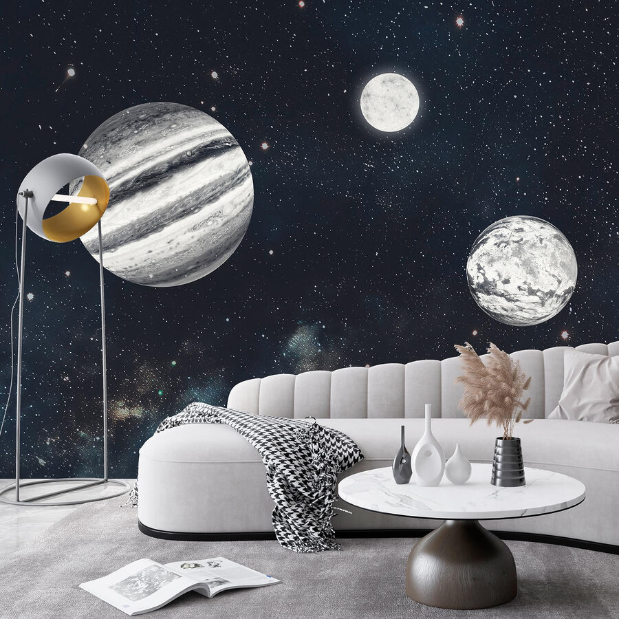 Ooit gedroomd om in slaap te vallen tussen de sterren? Maak kennis met de muurschildering “Planeten in de ruimte met sterren”. Stel je voor dat je wakker wordt, je omdraait en verdwaalt in een kosmische dans – gewoon op je muur. Perfect voor liefhebbers van sterrenstelsels of iedereen die wel eens een nachtelijke ontsnapping aan de sterrenhemel wil. Het is alsof je een klein universum in je eigen huis hebt. Bovendien zullen gasten denken dat je stiekem een astronaut bent geworden. Dus, hang dit universum aan je muur en laat je verbeelding de vrije loop – zwaartekracht is optioneel!