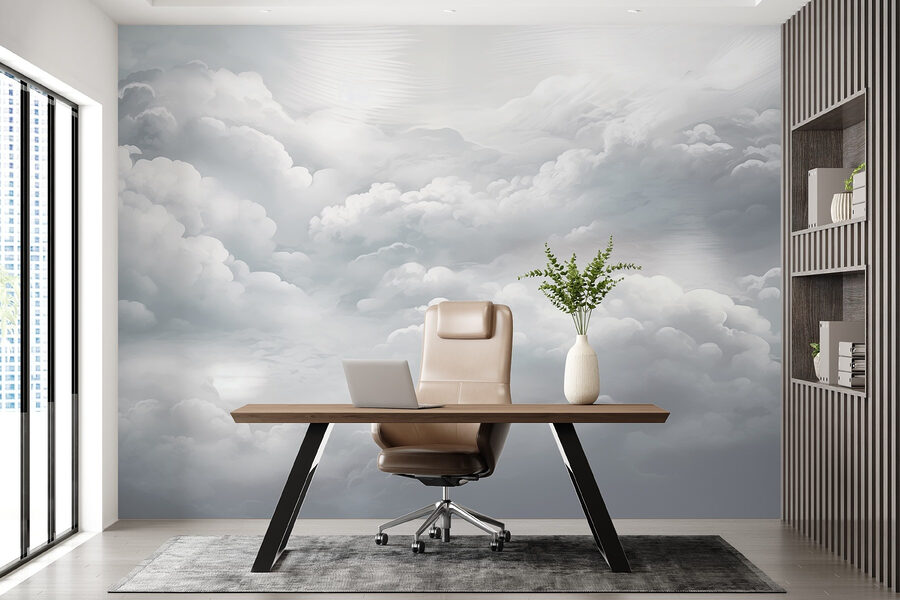 Tover elke kamer om in een dromerige ontsnapping met de muurschildering “Cloudy Sky with Many Clouds”. Stel je voor dat je wakker wordt onder een gezellige deken van pluizige wolken, gewoon in je eigen kamer. De zachte, grijze tinten fluisteren kalmte, nodigen uit tot dagdromen en een beetje sereniteit. Of het nu de woonkamer is of een gezellig leeshoekje, deze muurschildering kan een gewone muur veranderen in een buitengewoon uitzicht. Het is alsof je je eigen stukje hemel hebt, zonder het weerbericht. Perfect om naar te kijken als je even wilt dagdromen – zonder het risico op regen. Dus pak een kopje koffie, leun achterover en laat deze mooie wolken hun magie doen!