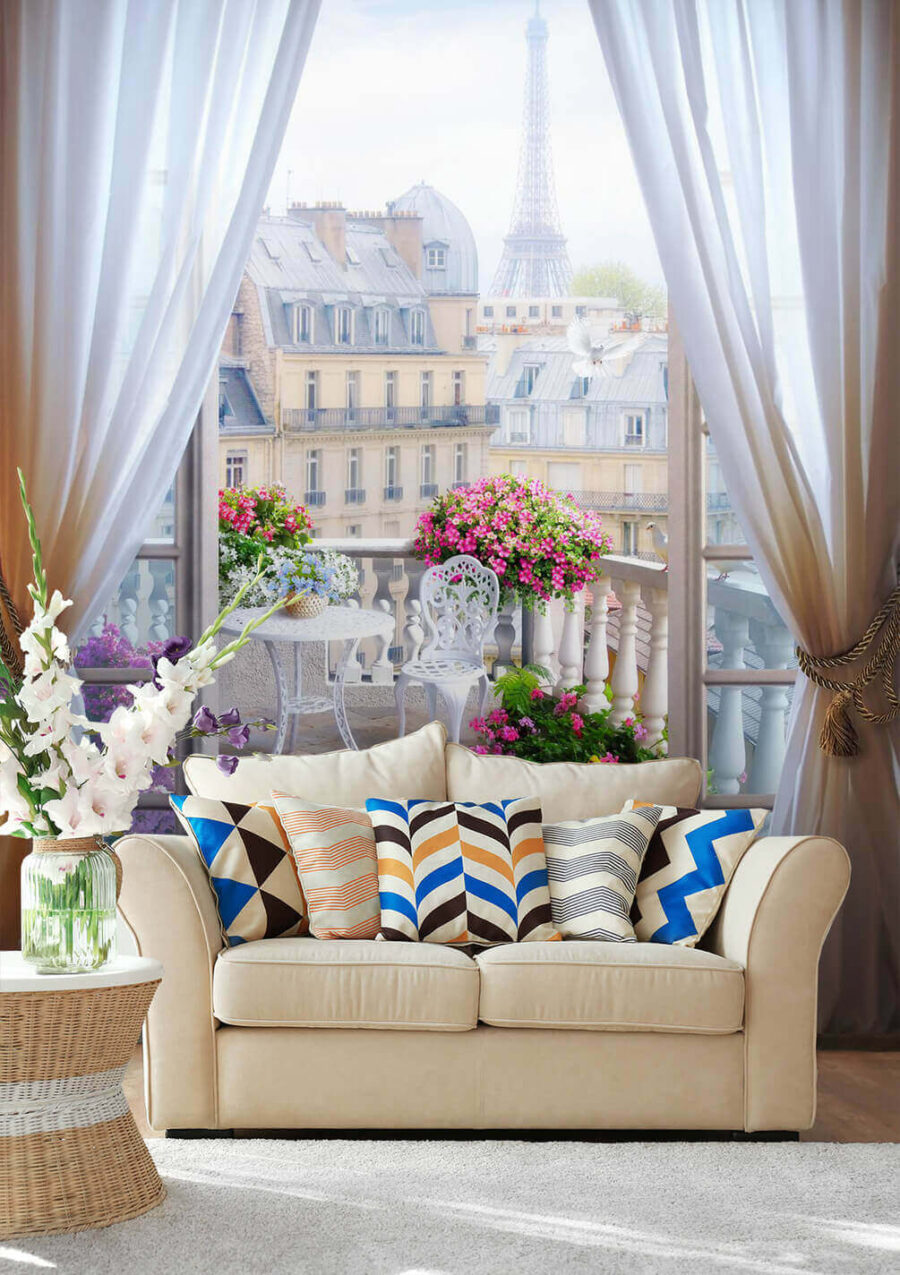 Transformeer elke kamer met deze prachtige muurschildering die de charme van een Parijs balkon rechtstreeks in uw huis brengt. Stel je voor dat je wakker wordt met uitzicht op bloeiende bloemen en de Eiffeltoren die door de vitrages glinstert – het is alsof je in een ansichtkaart leeft! Deze muurschildering geeft die dromerige ontsnapping weer, perfect voor dagdromers en liefhebbers van unieke decoraties. Stel je voor dat je hier ‘s ochtends van je koffie nipt, omringd door levendige bloemen en een zacht briesje. Het is een stukje paradijs zonder jetlag. Dus waarom zou je je muren geen verhaal laten vertellen?