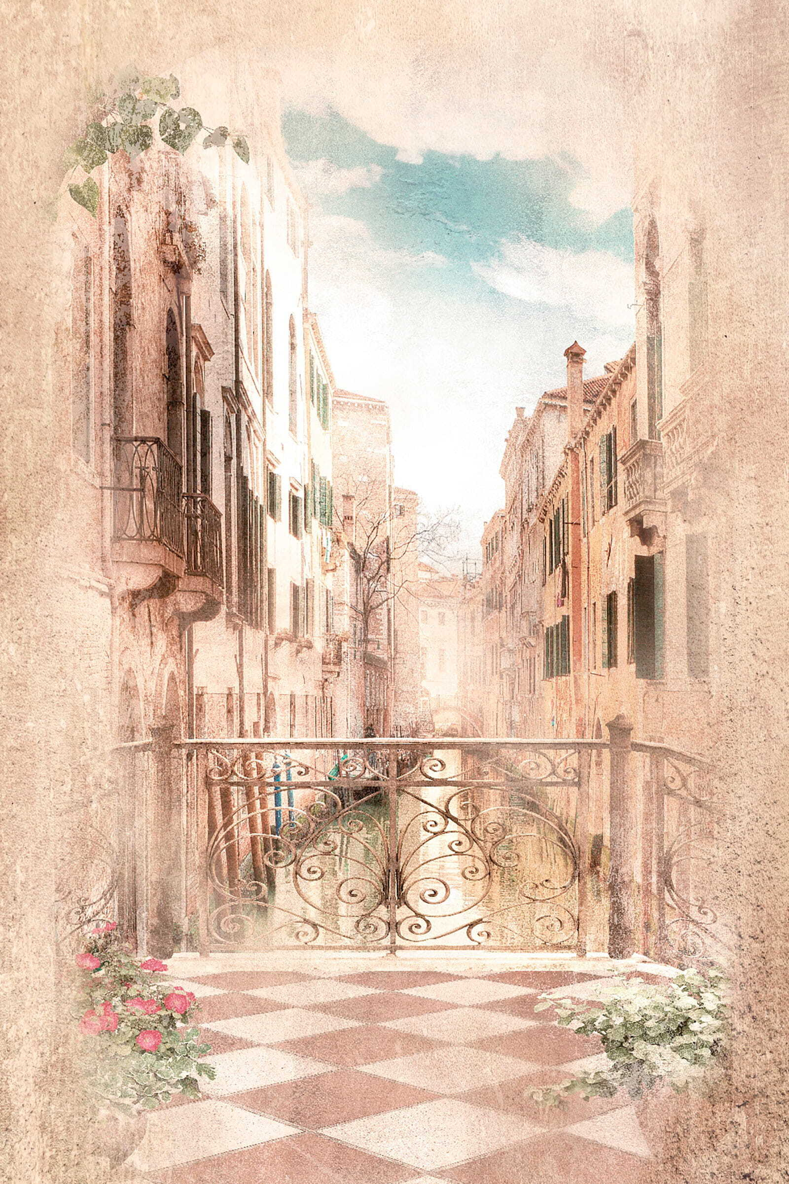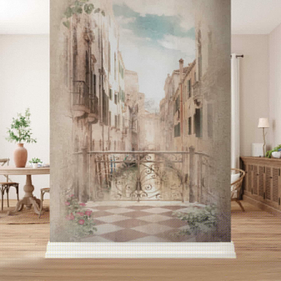 Voel je dat? Het is de zachte bries van een gracht die omhoog fluistert. Die zachte pasteltinten, de verouderde gebouwen en dat delicate zonlicht? Het creëert allemaal een warme, bijna nostalgische sfeer. Je kunt de gondeliers bijna horen zingen!