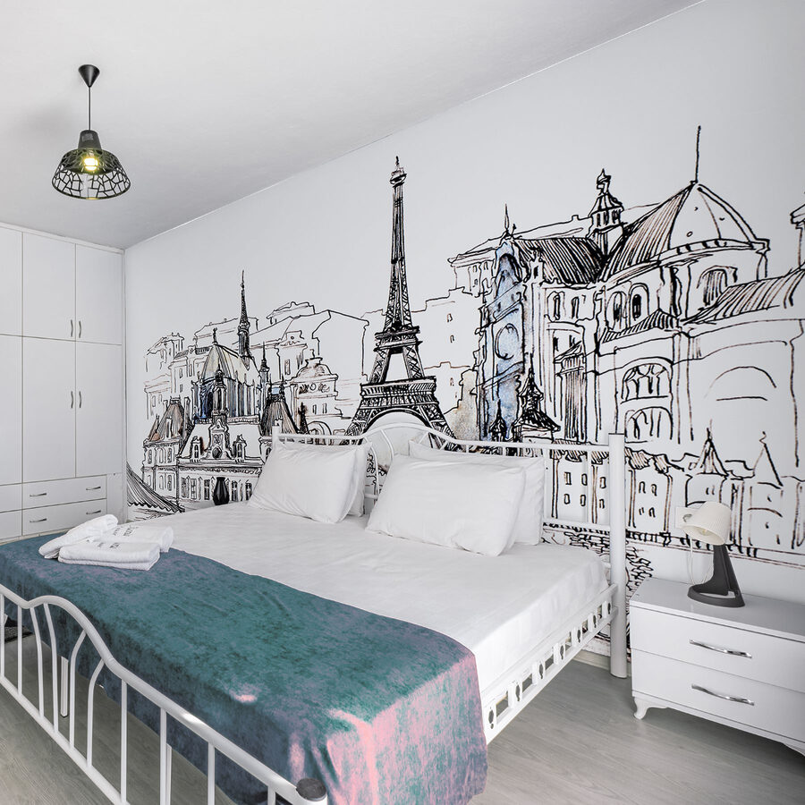 Stel je voor dat je wakker wordt met deze prachtige muurschildering, een charmante schets van een iconisch stadsgezicht op je muur. Het heeft die moeiteloos coole, chique uitstraling waar je naar op zoek was. Het lijnenspel, zo elegant en gedetailleerd, trekt je naar binnen en geeft je bijna het gevoel dat je door die schilderachtige straatjes wandelt. Perfect voor een woonkamer of een creatieve werkplek, het voegt een vleugje verfijning toe zonder te formeel te zijn. Eerlijk gezegd is het net alsof je elke dag een minivakantie in een kunstgalerie doorbrengt. Een echte gespreksstarter!
