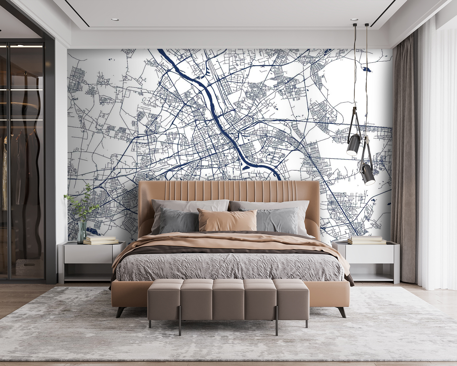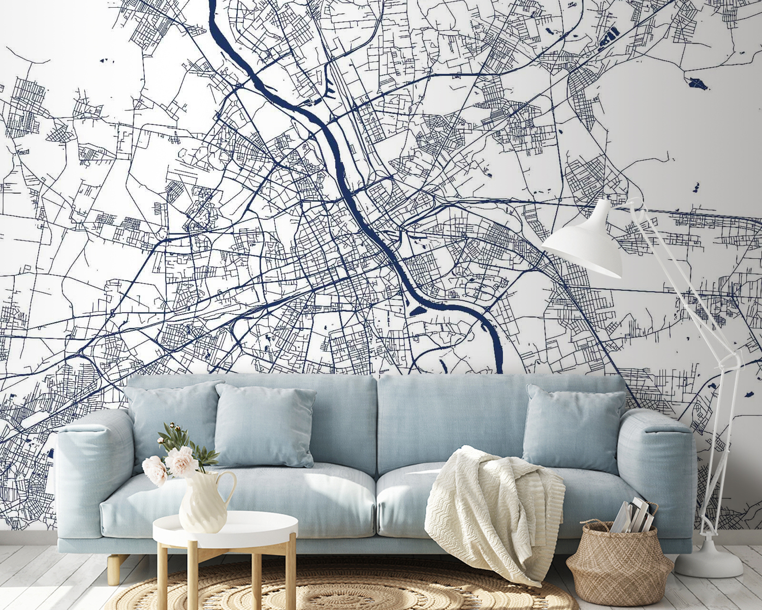 Een ruimte omtoveren in iets speciaals is net zo eenvoudig als het ophangen van deze muurschildering van een stadsplattegrond. Het is als een portaal naar avontuur in je woonkamer. Stel je de verhalen voor die zich kunnen ontvouwen als vrienden bij elkaar komen en hun vingers langs de kronkelende straatjes en kronkelende rivieren strijken. Elk stukje kan een herinnering oproepen, misschien wel een favoriete koffieshop of een verborgen park. De gedurfde marineblauwe lijnen tegen een frisse achtergrond voegen een vleugje verfijning toe, terwijl het toch heerlijk knus aanvoelt. Je muren zullen niet langer gewoon muren zijn; ze zullen eindeloze mogelijkheden en een vleugje nostalgie bevatten. Waarom laat je deze muurschildering niet inspireren tot dagdromen of het plannen van de volgende reis?