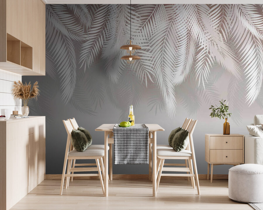 Wil je een kamer opfleuren zonder veel gedoe? Kijk dan eens naar deze witte palmbladeren op een beige achtergrond – het is net alsof je een vleugje tropen in huis haalt! Deze muurschildering voelt super rustgevend aan, net als het zachte gezwaai van palmbladeren in een zacht briesje. Stel je voor dat je na een lange dag thuiskomt; met dit op je muur zou je bijna verwachten dat je de oceaan op de achtergrond hoort.